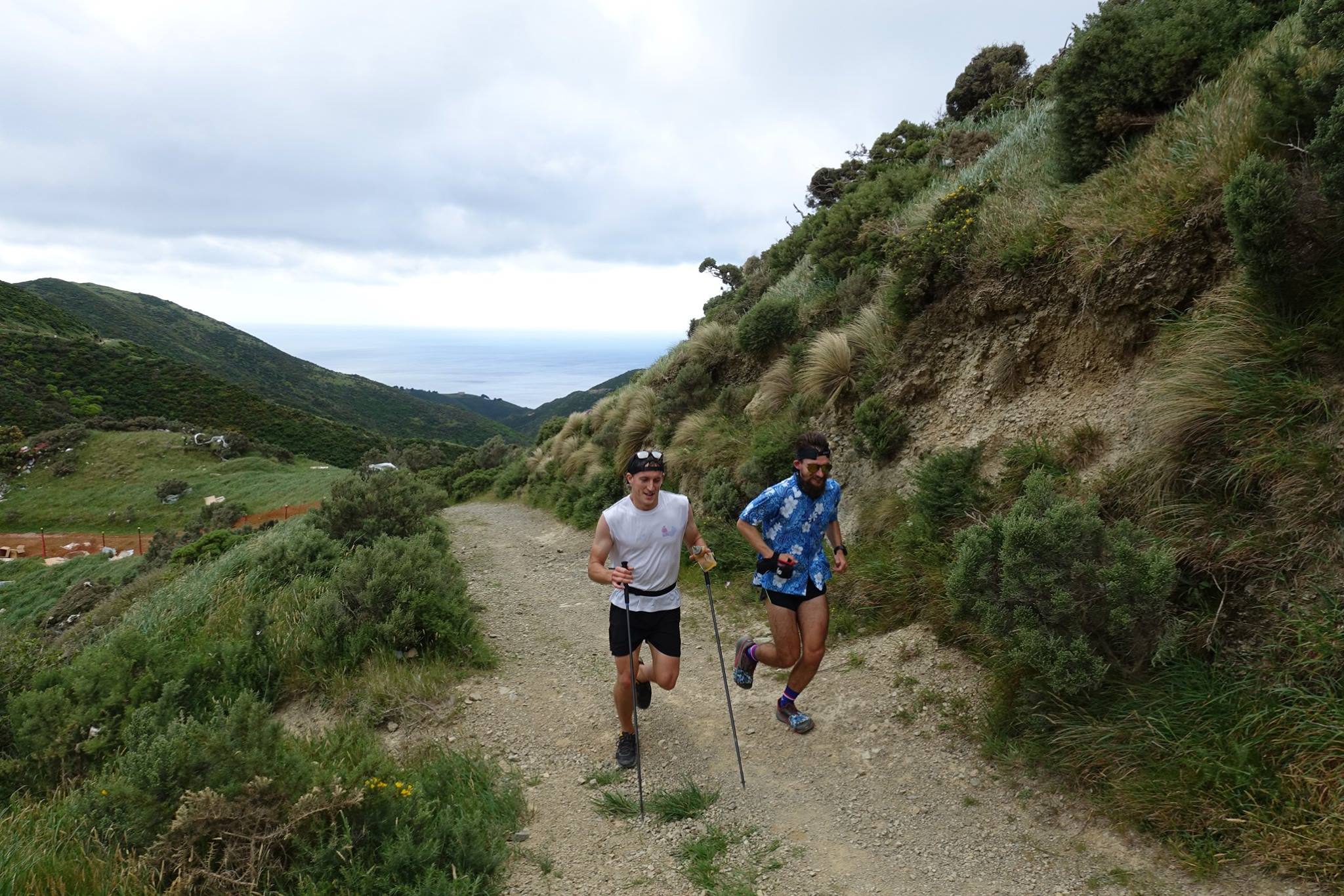 Local & international participants taking on the Tip Track Marathon - Greg from Ireland on the left and local trail champion Will on the right racing neck and neck